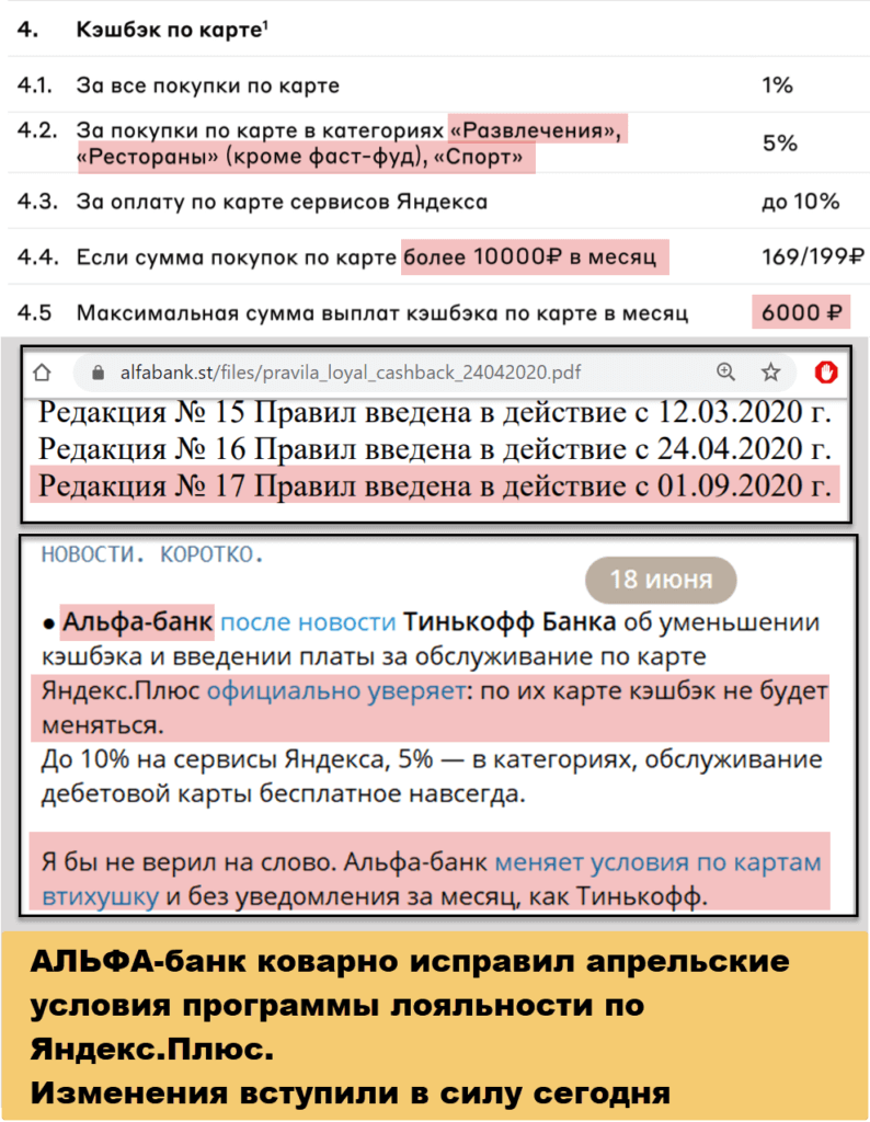 ? Символично, что в июне SMM-щики Альфы радостно ухали, что Тинькофф объявил об ухудшении условий по своей карте Яндекс.Плюс и заверяли, что уж они-то кэшбэк не испортят.