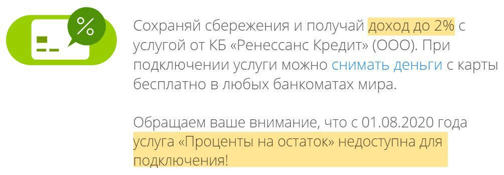Появился процент на остаток до 50к — 3% годовых (в июле — 0%, до июля 4%), на сумму выше — остается 4% годовых.