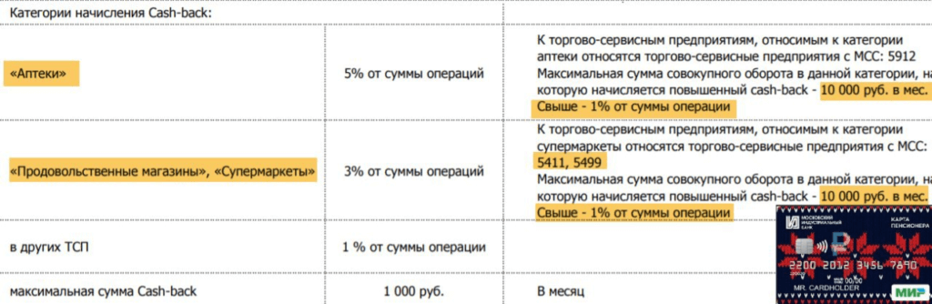 По «Карте Пенсионера» Московского Индустриального банка: