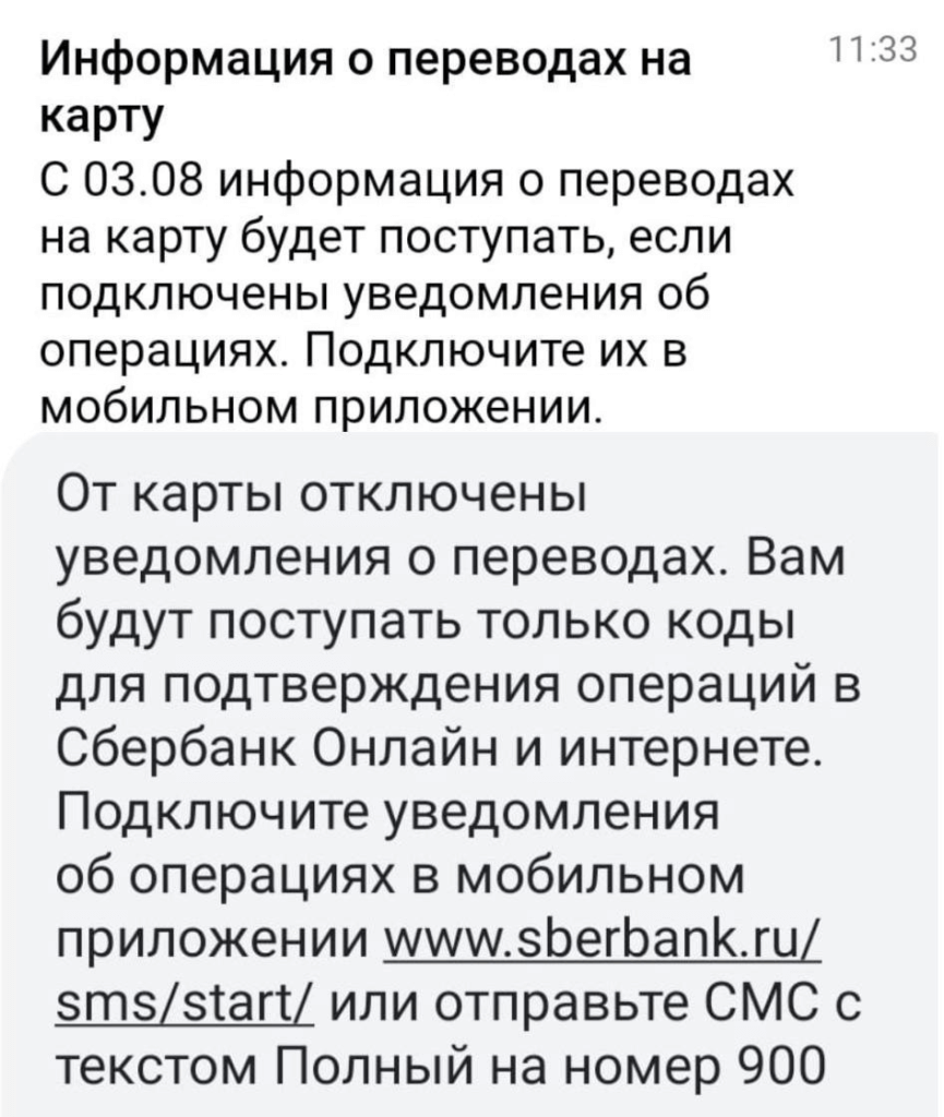 Сбербанк срезал функционал смс-уведомлений