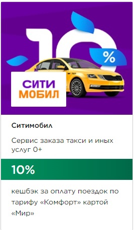 Ситимобил комфорт. 10% кешбэка за оплату картой Мир до 30.11.2021