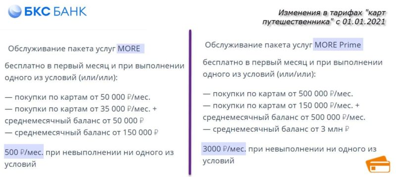 — Страница More (https://bcs-bank.com/morevisaplatinum); Страница More Prime (https://bcs-bank.com/moresignature); Тарифы с 01.01.2021 (https://bcs-bank.com/f/rates-fiz-dkbo-more.pdf) (pdf); Сравнение файлов (https://draftable.com/compare/fLnDkyBjxVde) #бкс