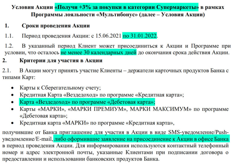 Согласно п. 2.1 в акции могут принять участие клиенты – держатели карт «Вездедоход», оформившие заявление (!) на присоединение к акции в офисе банка в период проведения акции.