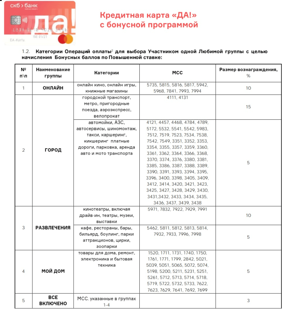 СКБ-банк: кредитная карта «ДА!» с бонусной программой