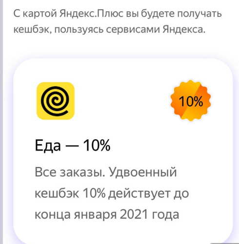 С 1 февраля по 30 апреля по картам Яндекс.Плюс повышенный кэшбэк 10% действует на покупки в Яндекс.Маркет (бывш. Беру), по другой информации — на Яндекс.Еде.