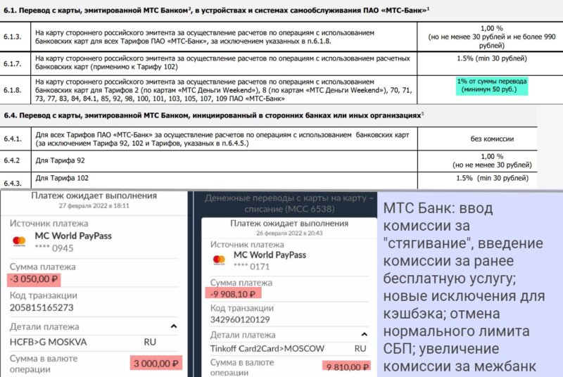 ● Самое главное: МТС Банк стал «антидонором», т.е. за стягивание денег сторонним банком берёт комиссию — 1%, мин. 50 ₽.