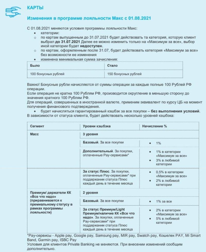 Вкратце, как изменится кэшбек для опции программы «Максимум на все»:
