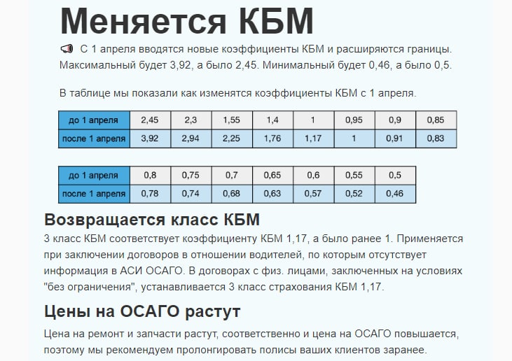 Вырастет ли стоимость ОСАГО для вас — нужно считать на конкретных примерах, у меня с такими изменёнными параметрами КБМ и КВС стоимость на 2% ниже.