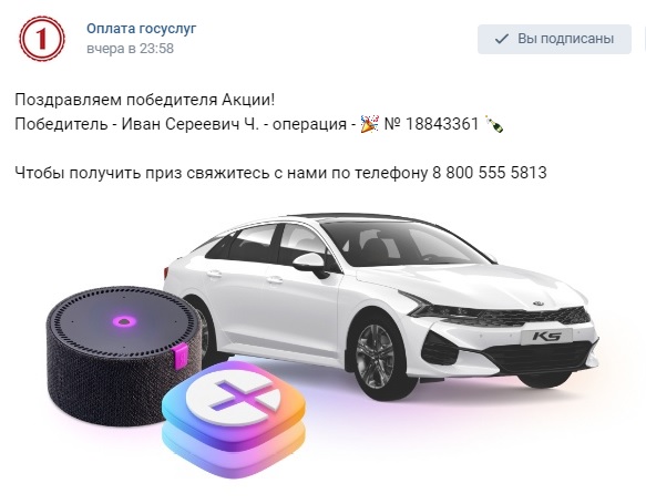 Сервис oplatagosuslug.ru опубликовал списки победителей розыгрыша за платежи, проводимого совместно с яндекс pay, в том числе назвал новоиспеченного автовладельца. Ищите себя в списках на странице сервиса в вк https://vk.com/oplatagosuslug