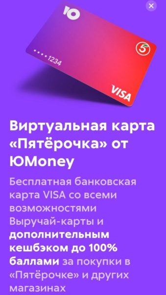 Виртуальная карта «Пятёрочка» от ЮMoney и розыгрыш призов. Спб и Лен область