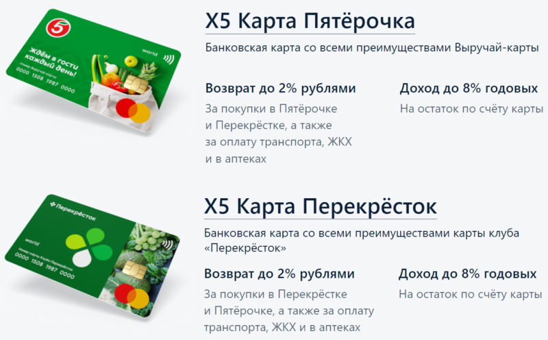 Карты: «Х5 Карта Перекрёстка» и «Х5 Карта Пятёрочки»