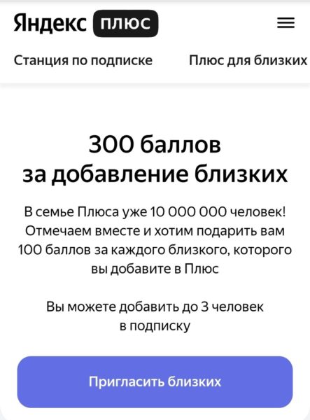 Яндекс.Плюс 300 баллов за добавление близких.