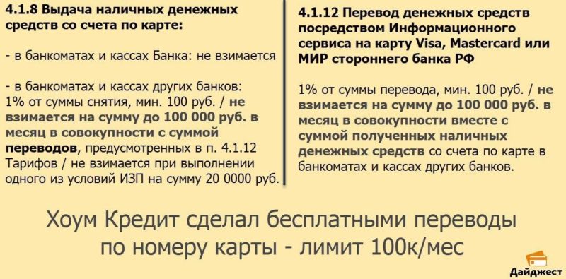 Хоум Кредит ввёл бесплатный лимит 100 тыс. на переводы по номеру карты