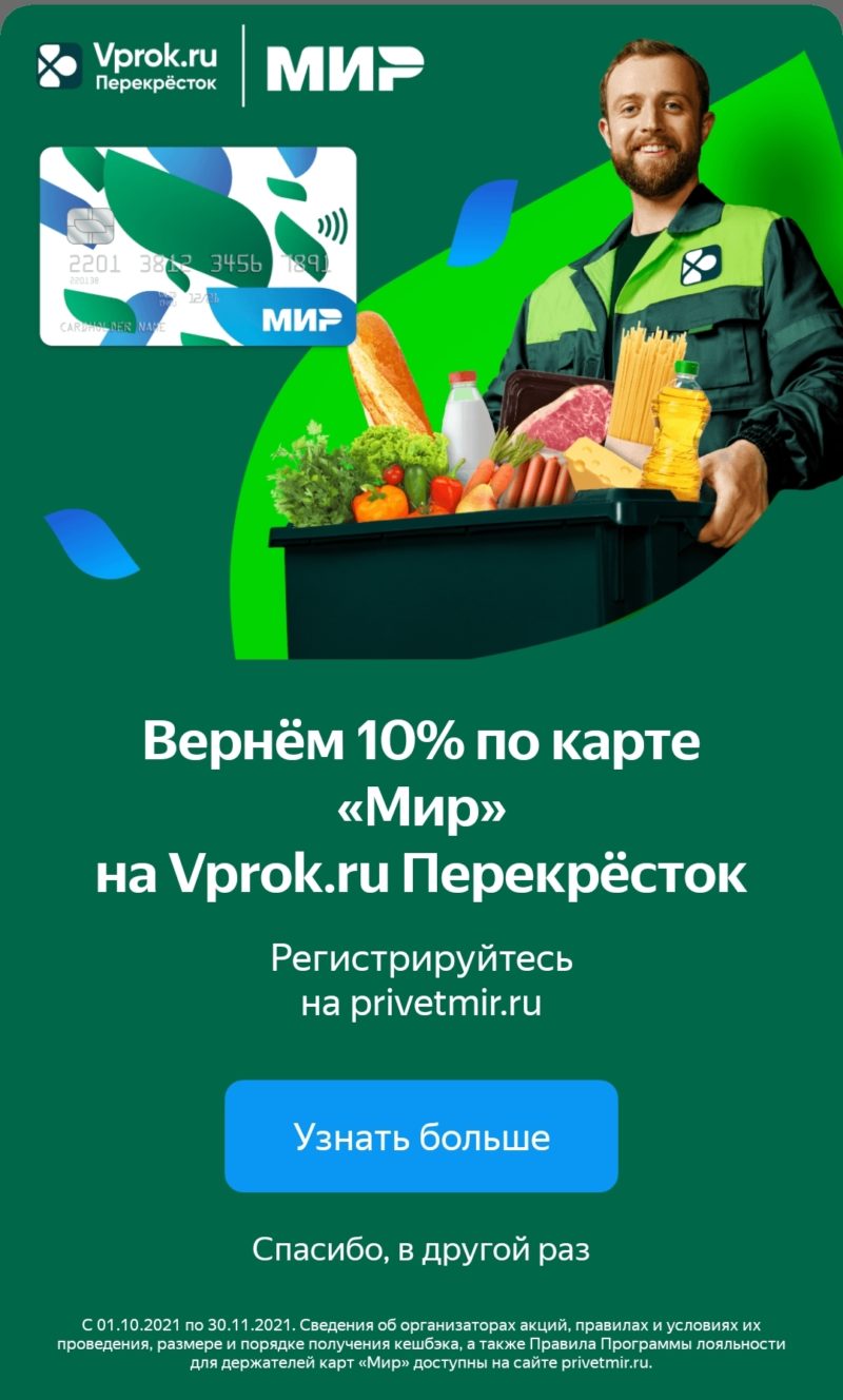 Перекресток.Впрок 10% кб по Миру с 1 октября