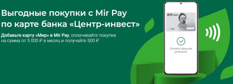 Банк Центр-Инвест: 500₽ за покупки с Mir Pay