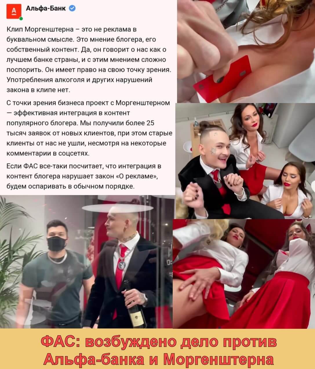 Февраль 2021: «В банке заявили, что не считают клип Моргенштерна рекламой» ?