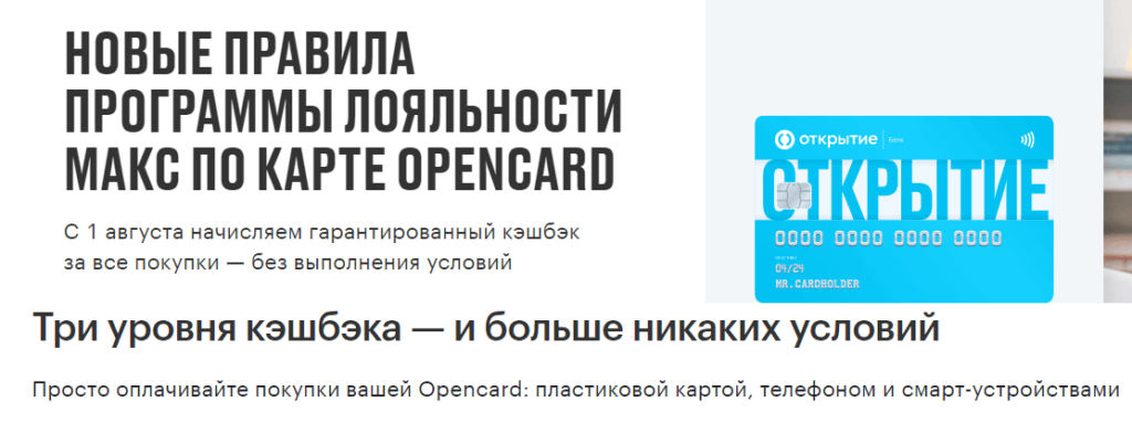 По всем картам банка Открытия (дебетовые, кредитные, зарплатные, виртуальные Opencard, Opencard Премиум, по картам «Всё что надо», Travel, Спартак и SVO Club) поменялись условия бонусной программы с 1 августа.