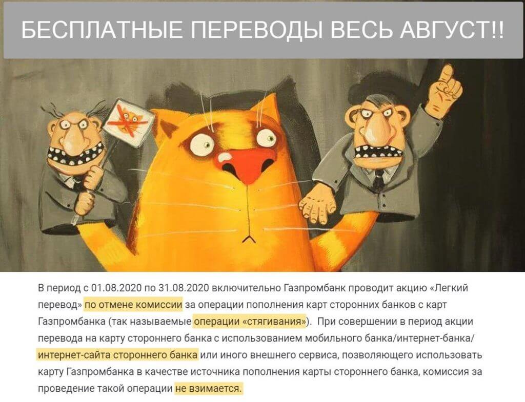 И та-дам, с 1 по 31 августа запускается акция «Легкий перевод»: в этот период ГПБ не будет брать комиссию за стягивание денег.