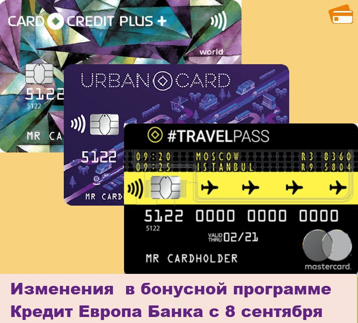 В «Кредит Европа банке» произойдут изменения в бонусной программе с 08.09.2020, коснётся это карт Сard Credit Plus, Urban Card, Travelpass.