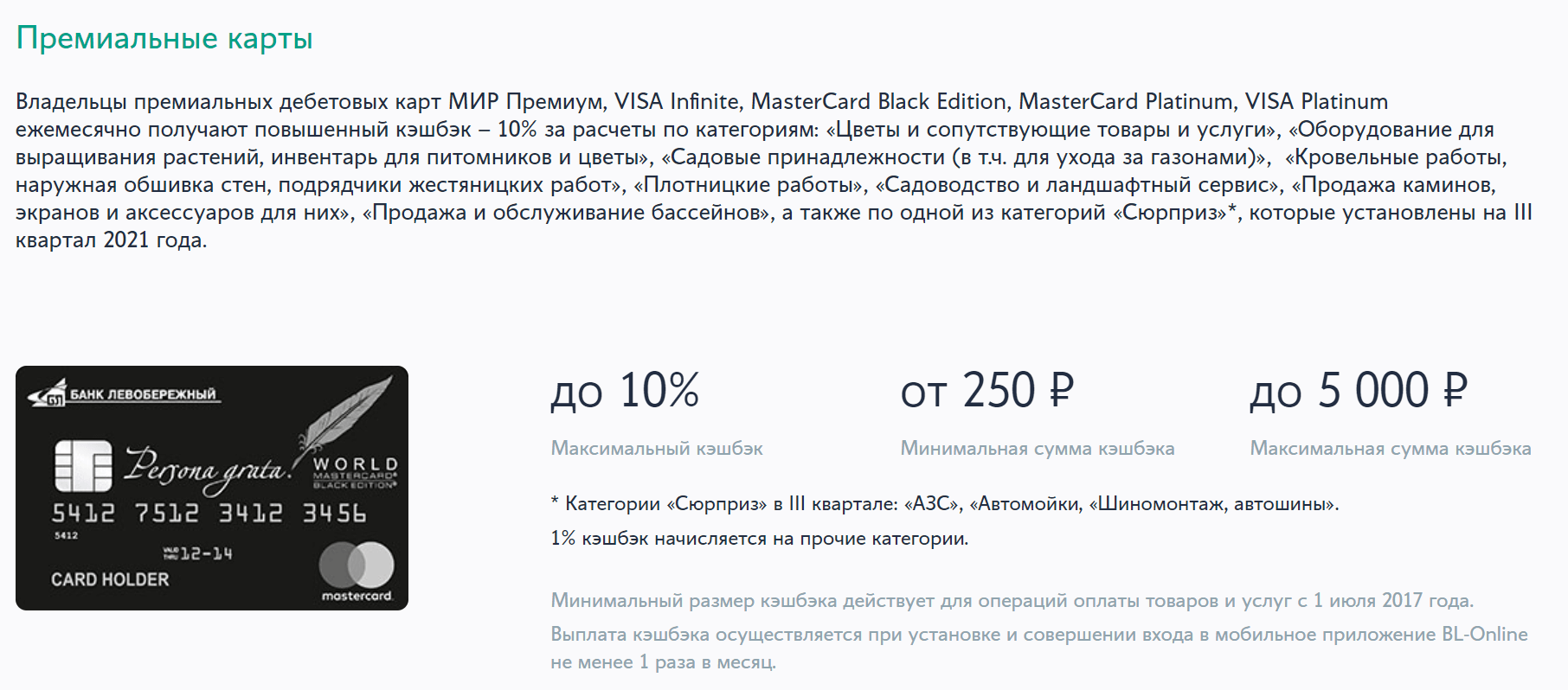 Оф сайт премиальной карты МИР; Условия акции с 10% кэшбэка