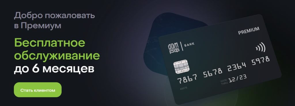 https://domrfbank.ru/promo/premium — это акционная страница с 6 мес. бесплатного премиального обслуживания. Нюанс в том, что нужно будет при оформлении предоставить премиальную карту другого банка с не истекшим сроком действия: Visa Signature или Infinite, Mastercard Black Edition или World Elite. Акция проводится с 07.06.21 по 01.12.2021, её участниками не могут стать действующие клиенты банка.