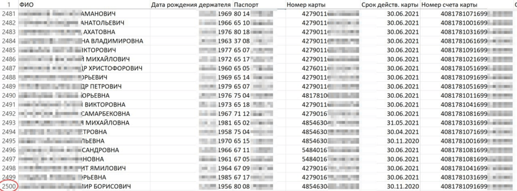 Через 2 недели в паблике уже находилось 5,2 тыс. записей. Напомню, что в этой базе было 81 поле (столбец). Это самая детальная банковская база, которая когда-либо попадалась при анализе утечек (с) @dataleak