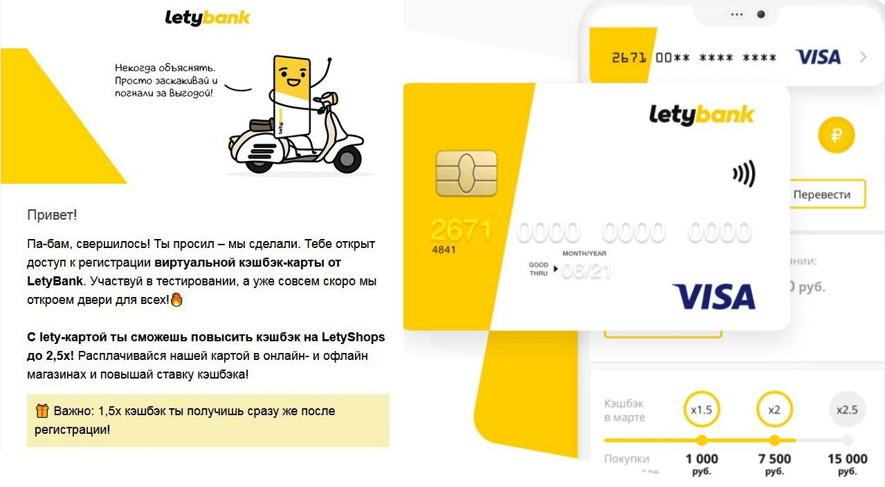 Кэшбэк-сервис Letyshops открыл доступ к оформлению виртуальной карты тем, кто подавал заявки ранее на промо-странице bank.letyshops.com